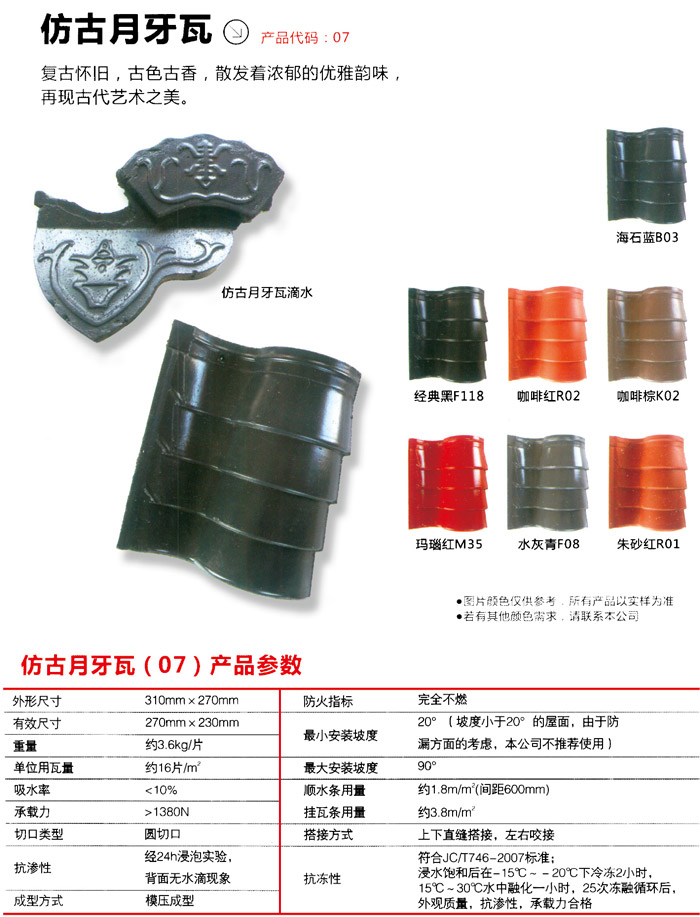 瓦體外型一致性好,無大規模裂縫和破損,瓦體沒有顯著歪曲形變狀況,瓦的凈重在標準范疇內,經取樣檢驗不會有很大的凈重誤差。一般的狀況下凈重誤差的造成是加工過程中常有的狀況,從這些方面能夠 明確水泥瓦生產商對生產制造監督控制是不是標準。